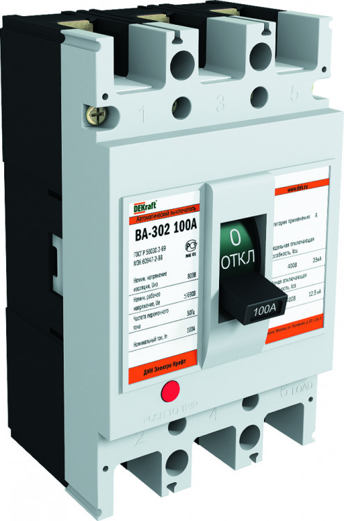 Силовой авт. выкл. 3P 100А ВА-302 25кА | 21008DEK | DEKraft