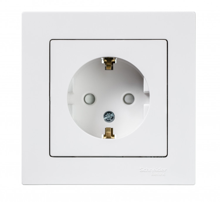 AtlasDesign Белый Розетка с/з со шторками, 16А, (в сборе с рамкой) | ATN000144 | Schneider Electric