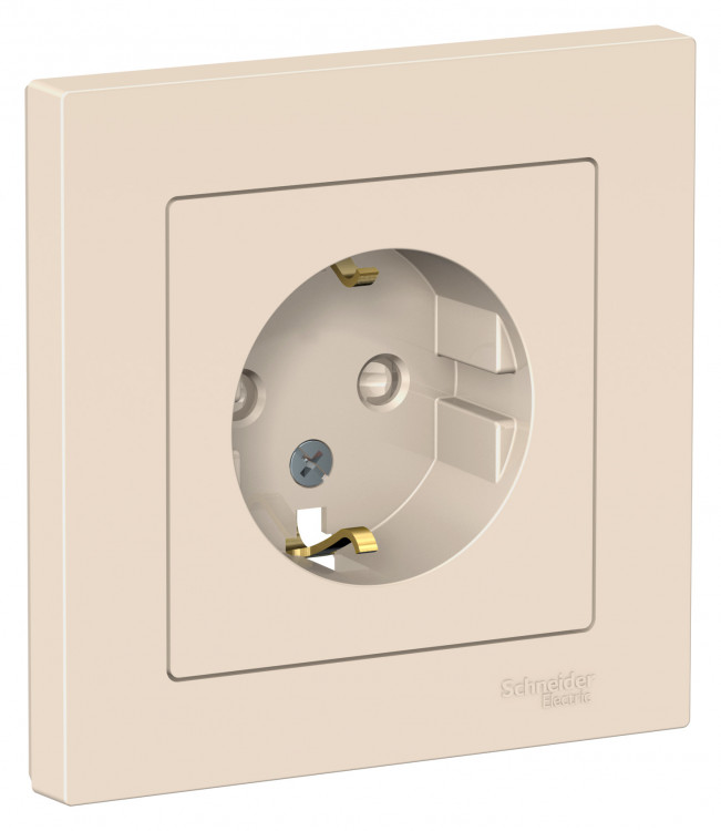 AtlasDesign Бежевый Розетка с/з со шторками, 16А, (в сборе с рамкой) | ATN000244 | Schneider Electric