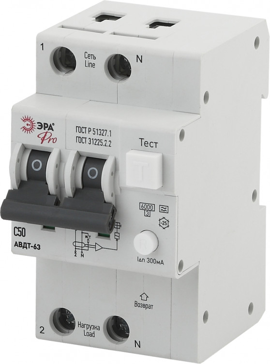 Автоматич. вык-ль диф. тока Pro NO-902-14 АВДТ 64 C50 300мА 1P+N тип A | Б0031864 | ЭРА