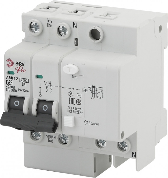 Автоматич. вык-ль диф. тока Pro NO-902-141 АВДТ2 C63А 30мА 1P+N тип AC | Б0032303 | ЭРА