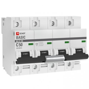 Автоматический выключатель 4P 50А (C) 10kA ВА 47-100 EKF Basic | mcb47100-4-50C-bas | EKF