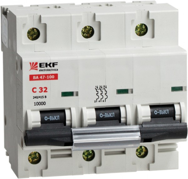 Автоматический выключатель ВА 47-100, 3P 31,5А (D) 10kA EKF | mcb47100-3-31.5D | EKF