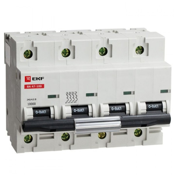 Автоматический выключатель ВА 47-100, 4P 10А (D) 10kA EKF | mcb47100-4-10D | EKF