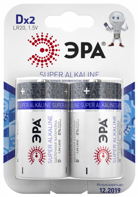 Батарейка щелочная (алкалиновая) LR20-2BL (12/96/3168) (D) | C0038443 | ЭРА