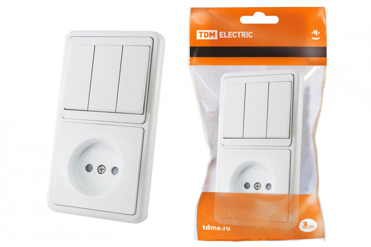 Блок комбинированный БКВР 3-х кл. выкл + розетка 2П с з/ш | SQ1813-0006 | TDM