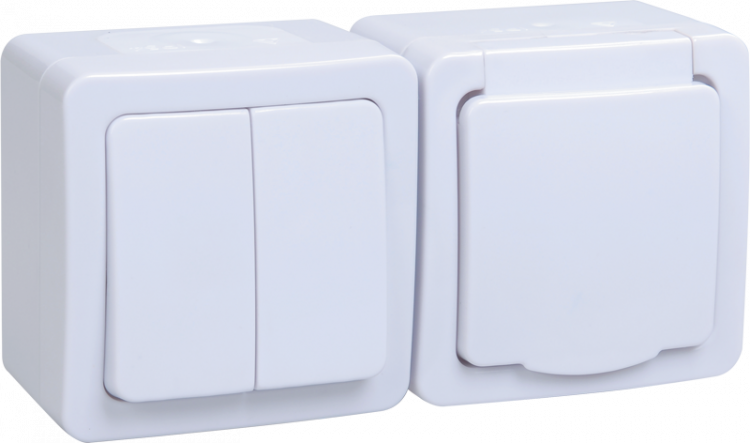 Блок выкл.2кл и розетка с з/к и крышкой для открытой установки белая клавиша белая крышка БГб-22-32-ГПБб IP54 Гермес PLUS | EBGMP20-K01-32-54-EC | IEK