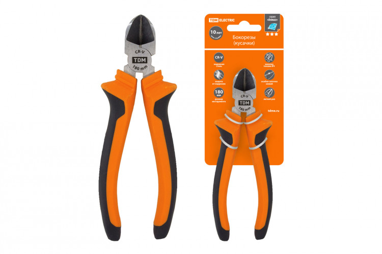 Бокорезы (кусачки), с двухкомпонентными рукоятками, CR-V сталь, 180 мм, серия "Алмаз" | SQ1012-0203 | TDM