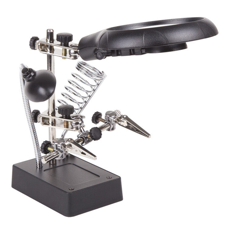 Держатель "третья рука" с лупой х2.5, подставка под паяльник, LED подсветка (ZD-126-3) | 12-0250 | REXANT