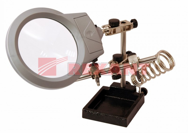 Держатель "третья рука" с лупой х2.5, подставкой под паяльник и LED подсветкой (CT-293 LED) (ZD-10M) | 12-0253 | REXANT