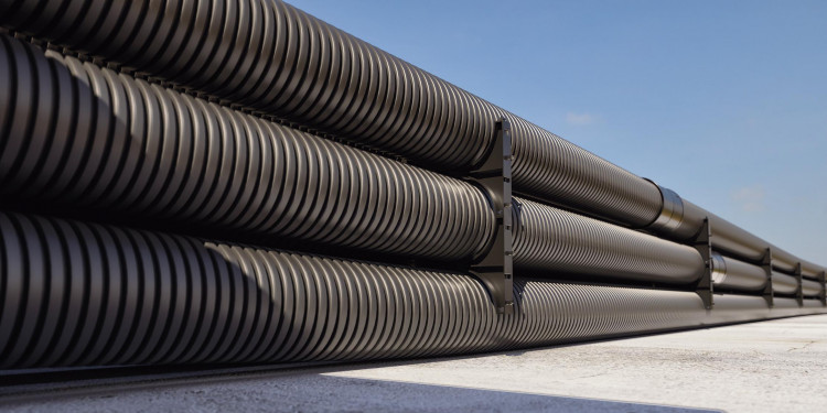 Двустенная труба ПНД гибкая для открытой прокладки д.125мм, SN8, ПВ-0,УФ, с протяжкой, в бухте 40м, цвет черный | 151912 | DKC