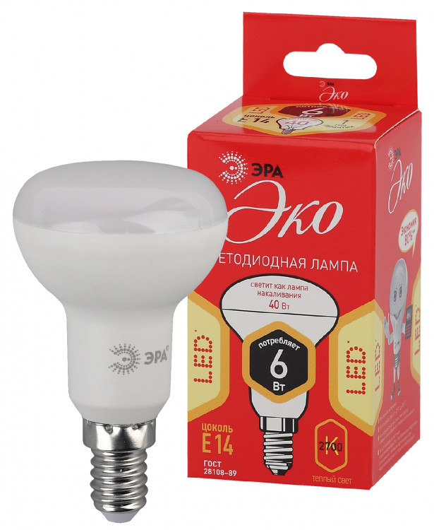 ECO LED R50-6W-827-E14 Лампы СВЕТОДИОДНЫЕ ЭКО ЭРА (диод, рефлектор, 6Вт, тепл, E14) | Б0020633 | ЭРА