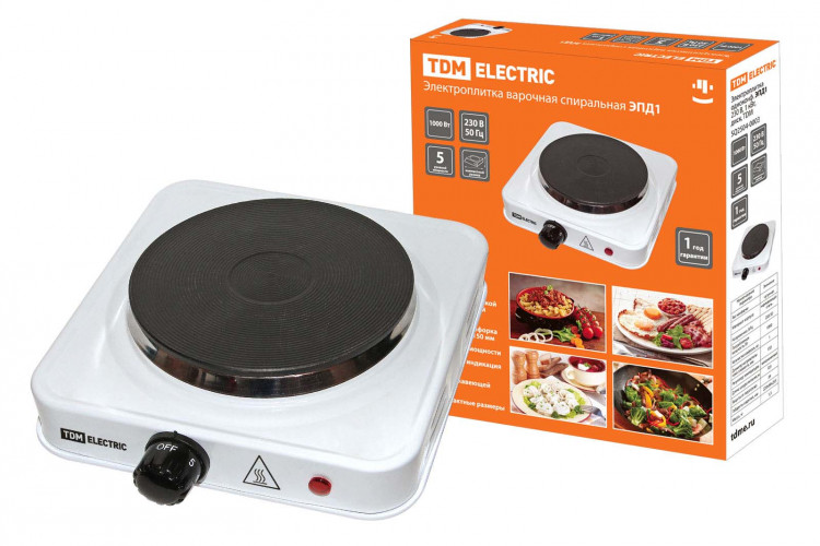 Электроплитка одноконф. ЭПД1 230 В, 1 кВт, диск, белая | SQ2504-0003 | TDM