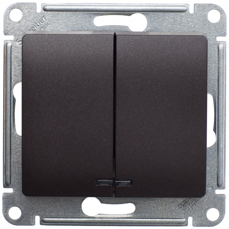 Glossa Шоколад Выключатель 2-клавишный с подсветкой сх.5а, 10АХ | GSL000853 | Schneider Electric