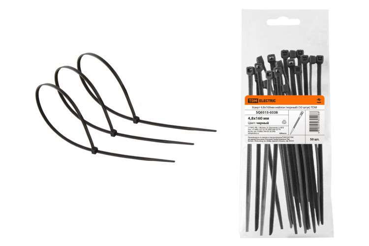 Хомут 4,8х160мм нейлон (черный) (50 штук) | SQ0515-0338 | TDM