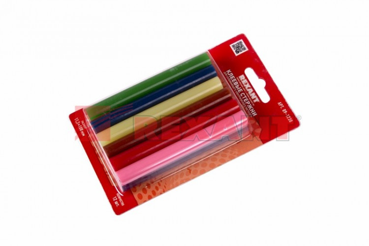 Клеевые стержни d=11,3 мм, L=100 мм, цветные (упак. 12 шт.) (блистер) | 09-1230 | REXANT