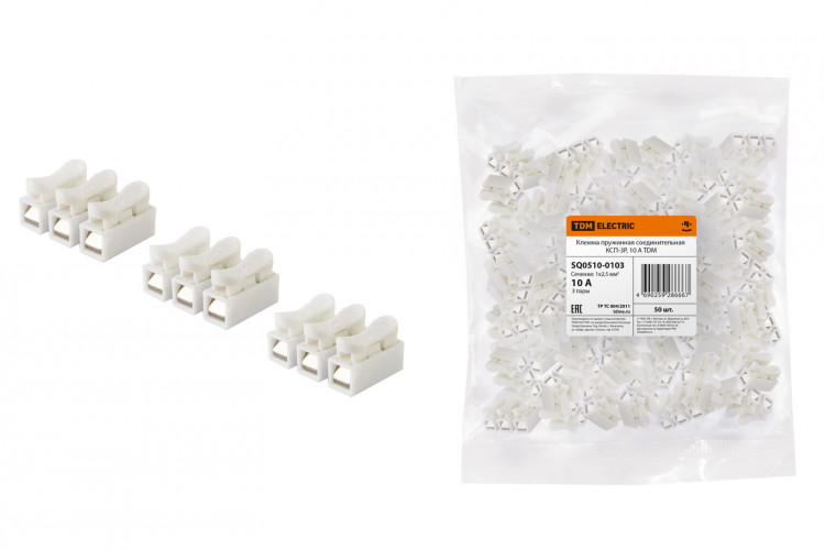 Клемма пружинная соединительная КСП-3P, 10 A | SQ0510-0103 | TDM