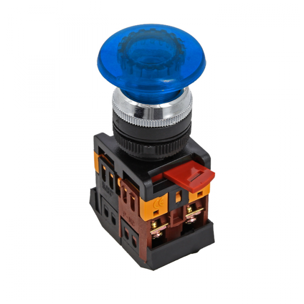 Кнопка AELA-22 "Грибок" синяя с подсветкой NO+NC 24В EKF PROxima | pbn-aela-1b-24 | EKF