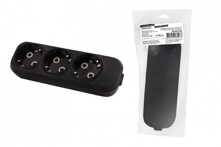 Колодка розеточная 3 гнезда 2П+3 16А 250В черная серии "Народная" | SQ1806-0426 | TDM