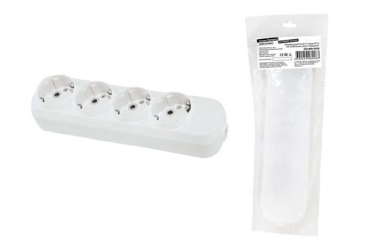 Колодка розеточная 4 гнезда 2П+3 16А 250В белая серии "Народная" | SQ1806-0420 | TDM