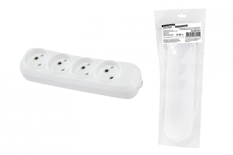 Колодка розеточная 4 гнезда 2П б/з 10А 250В белая серии "Народная" | SQ1806-0419 | TDM