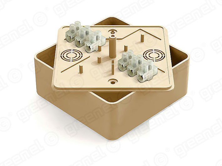 Коробка респределительная для О/П 100х100х44мм с клеммной колодкой ЗВИ-10 (2,5-6мм2) 6 клемм, IP40, цвет -СОСНА (25шт) | GE41222-11 | GREENEL