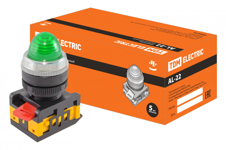 Лампа AL-22 сигнальная d22мм зеленый неон/230В цилиндр | SQ0702-0009 | TDM