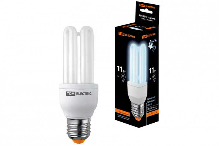 Лампа энергосберегающая КЛЛ 11Вт Е27 840 U образная 3U 41х116мм | SQ0323-0041 | TDM