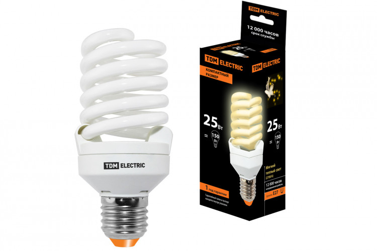 Лампа энергосберегающая КЛЛ 25Вт Е27 827 cпираль FST2 КОМПАКТ 55х120мм | SQ0323-0195 | TDM