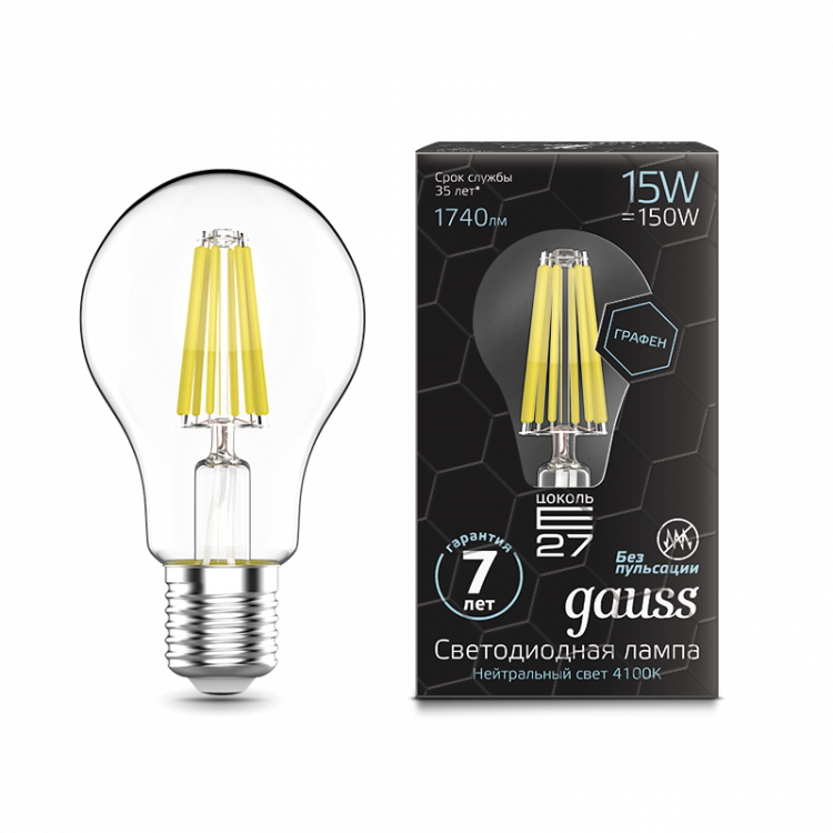 Лампа LED Filament Graphene A60 E27 15W 1740lm 4100К | 102802215 | Gauss