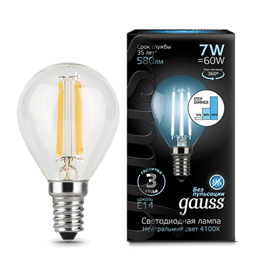 Лампа светодиодная Black LED Filament Шар E14 7W 580lm 4100K step dimmable | 105801207-S | Gauss