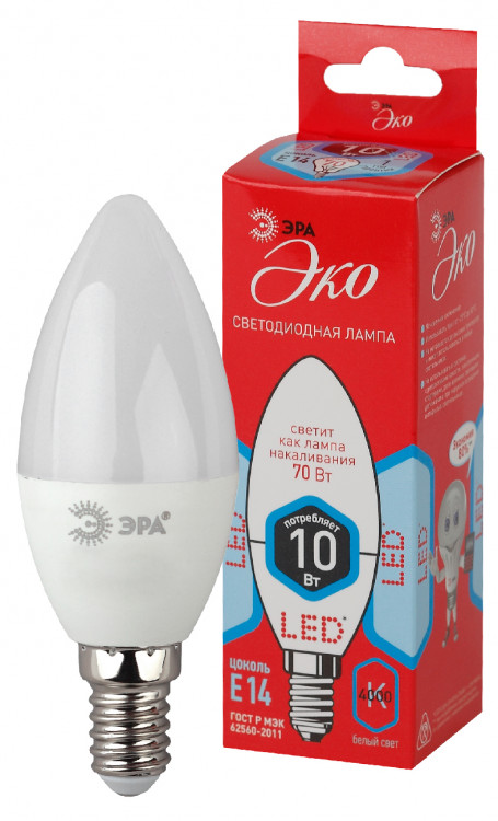 Лампа светодиодная ECO LED B35-10W-840-E14 (диод, свеча, 10Вт, нейтр, E14) | Б0032963 | ЭРА