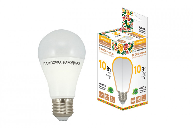 Лампа светодиодная LED 10Вт Е27 230В 4000К НЛ-LED-A60 Народная груша | SQ0340-0114 | TDM