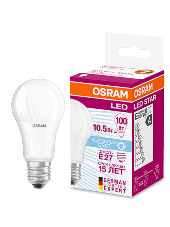 Лампа светодиодная LED 11,5Вт Е27 230В 6500К LS CLA 100 FR груша 240 град | 4052899971585 | Osram