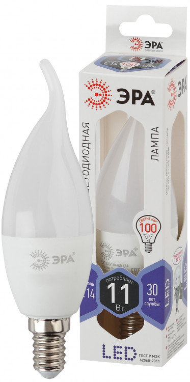 Лампа светодиодная LED 11Вт Е14 6000К smd BXS-11w-860-E14 | Б0032994 | ЭРА