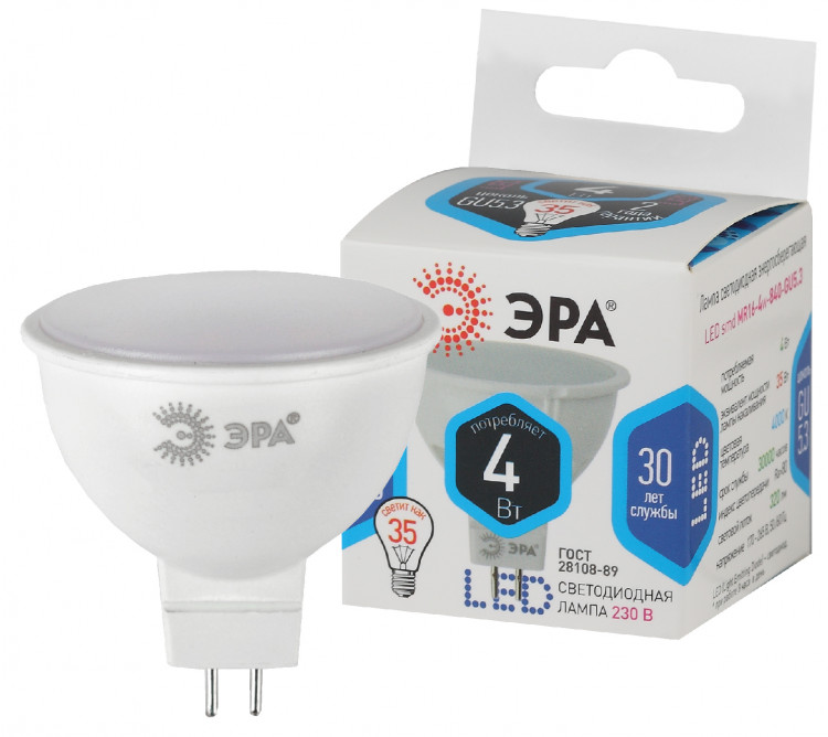 Лампа светодиодная LED 4Вт GU5.3 4000К smd MR16-4W-840- GU5.3 | Б0031010 | ЭРА