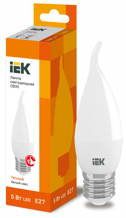 Лампа светодиодная LED 5Вт Е27 220В 3000К CB35 свеча на ветру | LLE-CB35-5-230-30-E27 | IEK