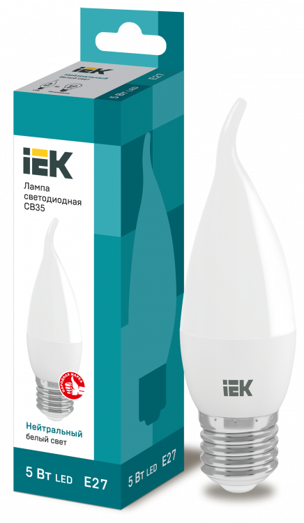 Лампа светодиодная LED 5Вт Е27 220В 4000К CB35 свеча на ветру | LLE-CB35-5-230-40-E27 | IEK