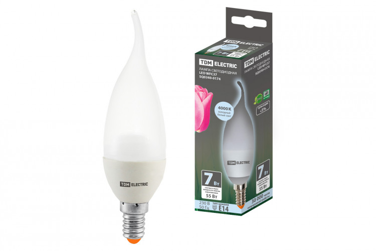 Лампа светодиодная LED 7Вт E14 230В 4000К WFС37 свеча | SQ0340-0174 | TDM