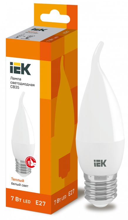 Лампа светодиодная LED 7Вт Е27 220В 3000К CB35 свеча на ветру | LLE-CB35-7-230-30-E27 | IEK