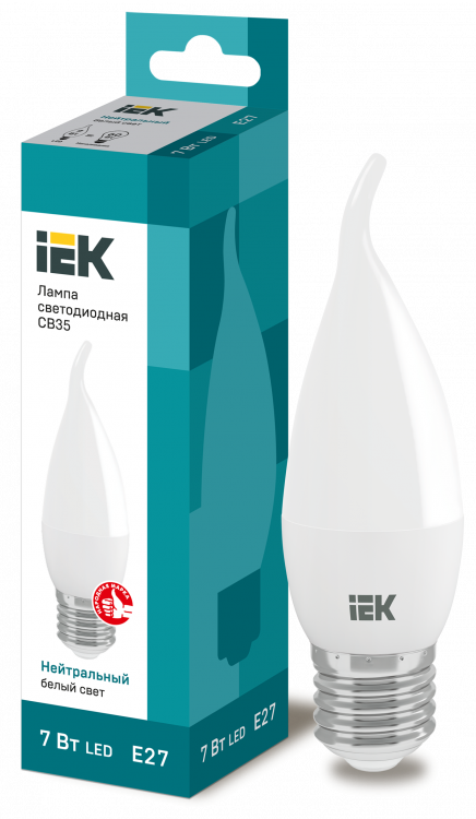 Лампа светодиодная LED 7Вт Е27 220В 4000К CB35 свеча на ветру | LLE-CB35-7-230-40-E27 | IEK