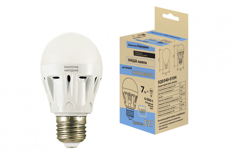 Лампа светодиодная LED 7Вт Е27 220В 6000К НЛ-LED-A60 Народная груша | SQ0340-0104 | TDM