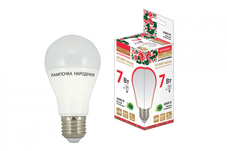 Лампа светодиодная LED 7Вт Е27 230В 3000К НЛ-LED-A60 Народная груша | SQ0340-0111 | TDM