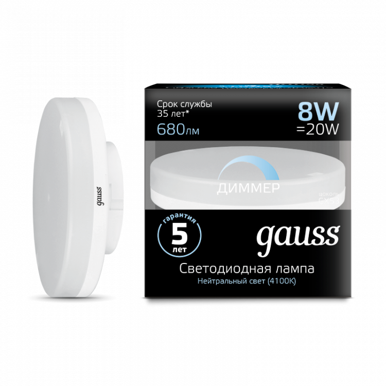 Лампа светодиодная LED 8Вт GX53 220В 4100К диммируемая | 108408208-D | Gauss
