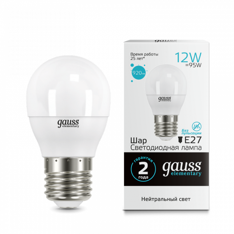 Лампа светодиодная LED Elementary Шар 12W 920lm E27 4100K | 53222 | Gauss