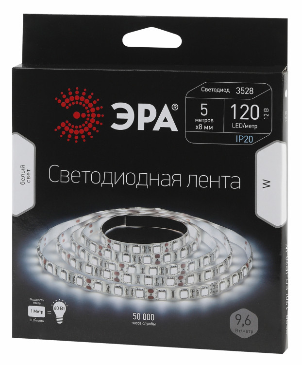 Лента светодиодная LS3528-120LED 9,6Вт 12В 5000К IP20 5м | C0043033 | ЭРА