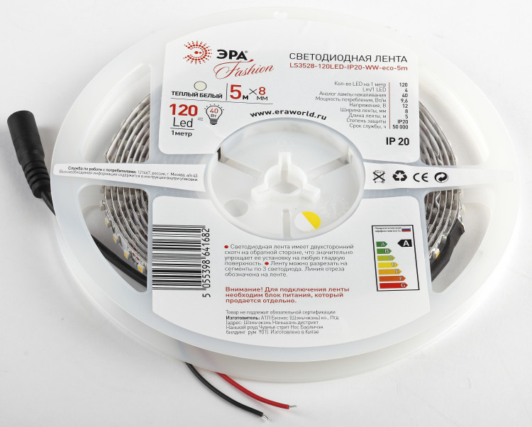 Лента светодиодная LS3528-120LED-eco 9,6Вт 12В 3000К IP20 5м | Б0002338 | ЭРА