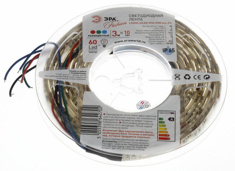 Лента светодиодная LS5050-60LED-eco 14,4Вт 12В RGBIP65 3м | Б0002352 | ЭРА