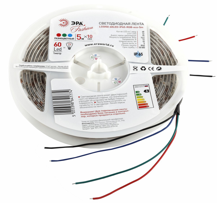 Лента светодиодная LS5050-60LED-eco 14,4Вт 12В RGBIP65 5м | Б0002347 | ЭРА