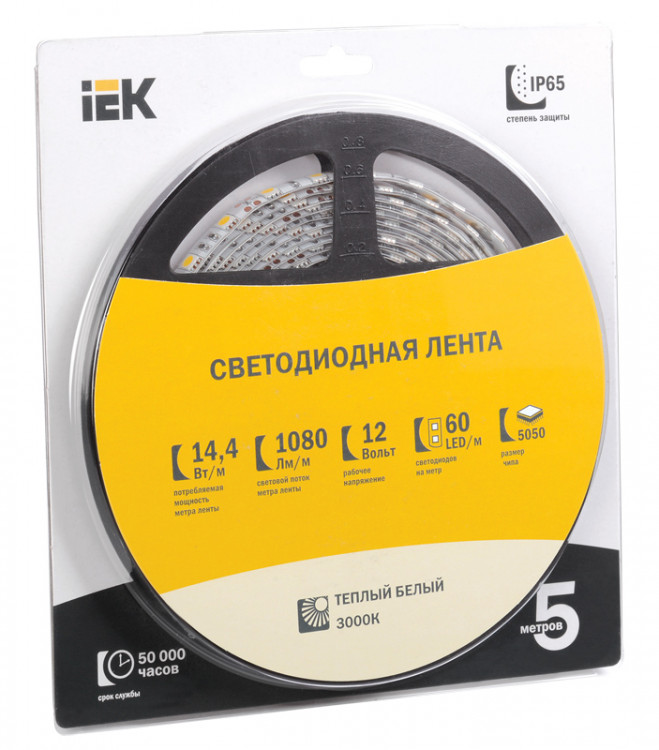 Лента светодиодная LSR-5050WW60 14,4Вт 12В 3000К IP65 5м | LSR2-1-060-65-1-05 | IEK